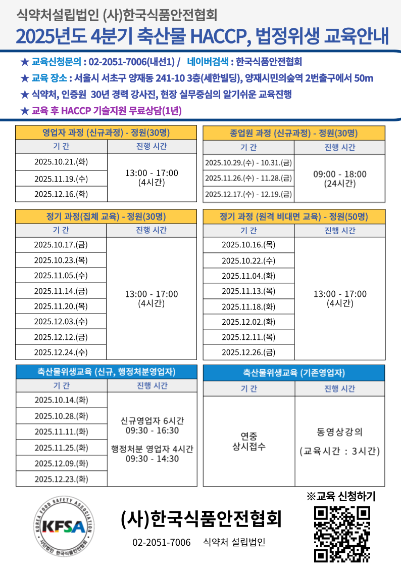 한국식품안전협회 축산물위생교육 온라인을 통하여 빠른 위생교육 이수가 가능합니다.